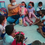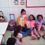 Na ocasião, a integrante do PEV Carla Gilvanete orientou as crianças para o cuidado necessário com o descarte dos materiais e os malefícios causados quando descartados diretamente no meio ambiente.