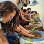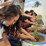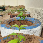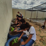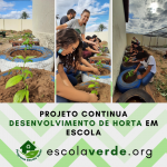 Como parte da parceria contÃnua com o Programa Escola Verde (PEV), alunos e professores da Escola Professora Adelina Almeida, em Petrolina-PE, realizaram mais uma etapa no desenvolvimento da horta escolar. Com pneus usados, cerca de 15 pessoas, entre estudantes e professores, promoveram a organização e o plantio da planta Ora-pro-nóbis em um canteiro da escola.
