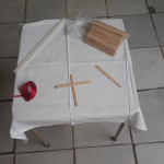 Os alunos utilizaram palito de picolé, cola branca, laços e lápis de cor para criar pequenas cruzes, símbolo pascal que lembra o amor de Jesus, todos no fim da tarde tiveram a oportunidade de levar para casa o que fizeram e mostrar a seus familiares.