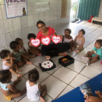 O Centro Educacional Infantil Gente Valente, localizado no Município de Sobradinho – BA, recebeu nos dias 11 e 13 de abril de 2022 mais uma iniciativa do Programa Escola Verde. Com o objetivo de trabalhar o período de páscoa, a integrante do PEV, Cristiane Maria, com o reaproveitamento de alguns materiais recicláveis desenvolveu objetos que remetem a esse período comemorativo. A atividade impactou aproximadamente 30 pessoas, entre crianças e educadoras, que participaram ativamente da confecção.