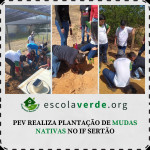 No último dia 10 de junho de 2022, os integrantes do Programa Escola Verde, Ernandes Ferreira, Flávia e Joseilson com o auxílio de alunos do curso de viticultura e da Turma 1º ano do ensino médio integrado do instituto federal, realizaram em uma ação conjunta o plantio de mudas de plantas nativas da região no IF Sertão Petrolina. A preparação das plantas foi realizada um dia antes (09/06) e contou também com o auxílio de diversos estudantes da instituição. A ação contou ao todo com a participação de 16 pessoas entre integrantes do PEV, estudantes e professores.