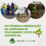 Atividades de arborização são pilares no Programa Escola Verde (PEV), tendo em vista a importância dessa temática para o meio ambiente e para a educação ambiental. Pensando nisso, o PEV, por meio das integrantes Cristiane Granja e Ednea de Castro, partiu para ação e promoveu ações de arborização na Companhia Independente de Policiamento Tático da cidade de Juazeiro-BA.