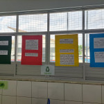 A aluna e integrante do PEV Milleny Mikelly, em colaboração com a professora Regina Cláudia, fez sua apresentação sobre o tema coleta seletiva e sustentabilidade, expondo a importância dessas questões para o meio ambiente e explicando como funciona cada cor de lixeira, o que pode ser depositado em cada uma, qual seria o destino correto após o descarte, entre outras questões.