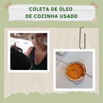 Segundo Ednea, essa prática já faz parte do seu cotidiano: “Durante um período de tempo junto os restos de óleo utilizado na cozinha e quando acúmulo uma quantia de 3 litros ou mais, destino a uma prima que reutiliza esse óleo para fazer sabão para lavar roupas. Esta ação evita que o óleo seja jogado no meio ambiente e ainda gera economia.”