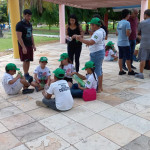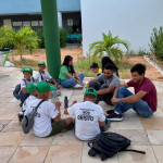 Os integrantes do PEV, Jackson Oliveira, Cauã Costa, Victor Roberto, Isac Mota, Arali Santos, Sousa Lima, Sávio Manoel, Ruan Victor, Janiele Alves, Vitor Roberto, Sthefany Fernandes, Milka Elias, Maria Eduarda e Carlos Eduardo, levaram materiais como garrafas PET e algumas amostras de brinquedos para ensinar e estimular as crianças a construírem do zero.