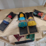 Alguns itens são feitos de materiais encontrados na natureza, como a palha, para produzir arte indígena, e outros utilizados para fazer bonecas foram produzidas na comunidade quilombola de Conceição das Crioulas.