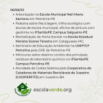 Palestra sobre Reciclagem, trilha ecológica com alunos de escola municipal, oficina de pintura com geotinta no IFSertãoPE Campus Salgueiro-PE iniciando às 13:30