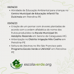 – Arborização nas escolas Fr. Xavier N1, Edison Nolasco C1, Neli M. Santana N3 e Pátio Interno do Distrito de Irrigação Nilo Coelho (DINC) pelo Programa Escola Verde em Petrolina-PE