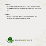 – Atividade de Arborização e Coleta Seletiva pelo Programa Escola Verde e UNIVASF em Petrolina-PE