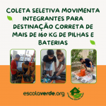 Nos últimos meses o Programa Escola Verde (PEV) realizou inúmeras horas de atividades de coleta seletiva de pilhas e baterias. As ações consistiram desde a produção de coletores com materiais recicláveis até a instalação e manutenção dos mesmos.