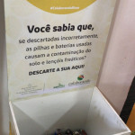 A integrante Paula Caroline deu o exemplo no seu condomínio, onde fez a confecção e instalação de coletores junto ao seu marido. Serão centenas de pessoas impactadas nessas ações, que visam dar um destino correto para as pilhas e baterias que não servem mais.