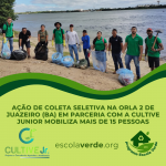 Ocorreu no último dia 01 de julho de 2023 uma ação de coleta seletiva na Orla II de Juazeiro–BA uma uma parceria entre o Programa Escola Verde (PEV) e a Empresa Junior (EJ) do curso de Engenharia Agrícola e Ambiental da UNIVASF, a Cultive Junior. A atividade mobilizou cerca de 15 pessoas, entre eles os integrantes do PEV, Jeová da Rocha, Taciana Freitas e Maria Jucicleide Costa com o intuito de recolher lixos jogados indevidamente no local que é um dos principais pontos turísticos da região.