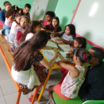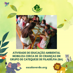 O momento de aprendizagem, guiado pela integrante Macleia Nunes, contemplou a contagem da história “A Criação do Mundo”, brincadeiras e desenhos que instigaram a imaginação das crianças, despertando a contemplação da beleza ambiental e a importância da preservação.
