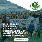 Sabendo que cuidar do meio ambiente é fundamental para a preservação do planeta e da qualidade de vida das pessoas, um grupo de 35 integrantes do Programa Escola Verde (PEV) promoveram, no dia 21 de setembro de 2023, uma caminhada de incentivo a preservação do meio ambiente, nos bairros Sal Torrado, Centenário e BNH em Paulo Afonso-BA.