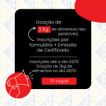 – Inscrições: 13 a 24 de outubro – entrega de 2kg de alimento no primeiro dia de aula