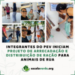 Durante o mês de setembro de 2023, integrantes do Programa Escola Verde (PEV) estiveram arrecadando cerca de 5kg de ração para animais de rua. Inicialmente, a distribuição aconteceu na Univasf Petrolina-PE, onde reutilizaram garrafas PET e papelão para confeccionar potes e placas para sinalização e pedidos de doação.