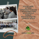 A oficina ocorreu no laboratório da instituição, sendo produzida e supervisionada pela docente Anekecia Lauro e pelos discentes Arminda Cantarelli e Luiz Felipe. Os temas abordados durante a ação foram incidência, quadro clínico e métodos diagnósticos de enteroparasitoses, além de diferentes técnicas de análise.