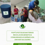 A preservação do meio ambiente começa pela redução do consumo e da reutilização de materiais. Pensando nisso, integrantes do Programa Escola Verde (PEV) produziram puff’s sustentáveis para a comunidade acadêmica da Univasf em Salgueiro-PE. A construção aconteceu nos dias 28, 29 de setembro e 02 de outubro de 2023. Já a entrega ocorreu no dia 11 de outubro de 2023. Nesse primeiro momento foram 3 puff’s, mas a ideia é expandir e construir mais em outros momentos. A ação irá impactar toda a comunidade acadêmica que se beneficiará do conforto de um bom lugar para sentar. A entrega reuniu mais de 15 pessoas.