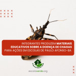 A Doença de Chagas é uma enfermidade parasitária transmitida pelo Trypanosoma cruzi, principalmente pelo inseto “barbeiro”. Com o propósito de enfrentar a doença, no dia 04 de outubro de 2023, membros do Programa Escola Verde (PEV) dedicaram-se a uma iniciativa educativa significativa. Sheila Bernardo, João Oliveira, Edenilson Teixeira, Ívine Carvalho, Vanessa Carmo e Williames da Silva uniram esforços para criar um conjunto abrangente de materiais educativos sobre essa enfermidade.