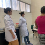 A ação foi ministrada pelas integrantes do PEV Dominik Mirely e Vitoria da Cruz, e teve a participação ativa de pacientes, estagiários e profissionais do serviço de dermatologia.