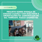 Em um esforço contínuo para conscientizar a população sobre a Doença de Chagas e suas medidas preventivas, o Programa Escola Verde (PEV) promoveu mais uma etapa da iniciativa na UBS Irmã Rita, localizada no bairro Sal Torrado em Paulo Afonso-BA, em 14 de novembro de 2023. A ação contou com diálogos esclarecedores e orientações, beneficiando cerca de 15 pessoas que aguardavam atendimentos e serviços na unidade de saúde.