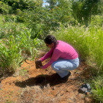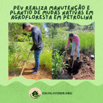A atividade foi desenvolvida no período da manhã, contando com os integrantes do PEV Giovanna Almeida e Italo Guilherme Coelho, que conduziram o manejo da flora local, realizando a manutenção do espaço e a abertura de berços para o plantio das mudas. Após o plantio, o capim foi cortado e utilizado como forragem, garantindo melhores condições para o crescimento das plantas.