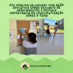 Pensando nisso, no dia 12 de dezembro de 2024, as integrantes do Programa Escola Verde (PEV) Hellen Alessandra e Laísa Santos realizaram uma atividade de colagem de pôsteres informativos e entrega de panfletos na Universidade Federal do Vale do São Francisco (UNIVASF).