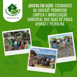 Em Paulo Afonso, no Bico de Pedro, área conhecida por ser ponto de lazer e recreação, 12 estudantes recolheram resíduos sólidos deixados no local. Após a coleta, os universitários abordaram os banhistas presentes, orientando sobre a importância de recolher o próprio lixo e preservar o espaço utilizado. Já no Parque Belvedere, cerca de 20 discentes participaram de uma atividade voltada à coleta seletiva e à conscientização ambiental. Além de recolher os resíduos, os estudantes dialogaram com os frequentadores do parque, reforçando a importância do descarte correto do lixo e do cuidado coletivo com os espaços públicos.