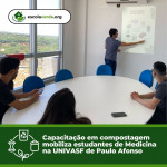 No dia 26 de março, uma capacitação sobre compostagem foi realizada na Universidade Federal do Vale do São Francisco (UNIVASF), campus Paulo Afonso, reunindo estudantes da turma do curso de Medicina. A atividade aconteceu na sala de tutoria e contou com a participação de cinco discentes: Renner Cipriano, Euzemberg Alves, Lara Luísa, Tawane Alves e Wegton Medeiros.