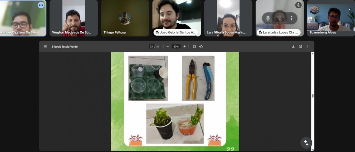 Na última sexta-feira, 30 de maio de 2025, uma ação educativa promovida pela PEV – Escola Verde mobilizou estudantes em uma rica discussão sobre a viabilidade e os benefícios das hortas de apartamento com o uso de materiais sustentáveis. A atividade aconteceu de forma remota, através do Google Meet, e teve duração de 4 horas, reunindo aproximadamente 7 participantes.