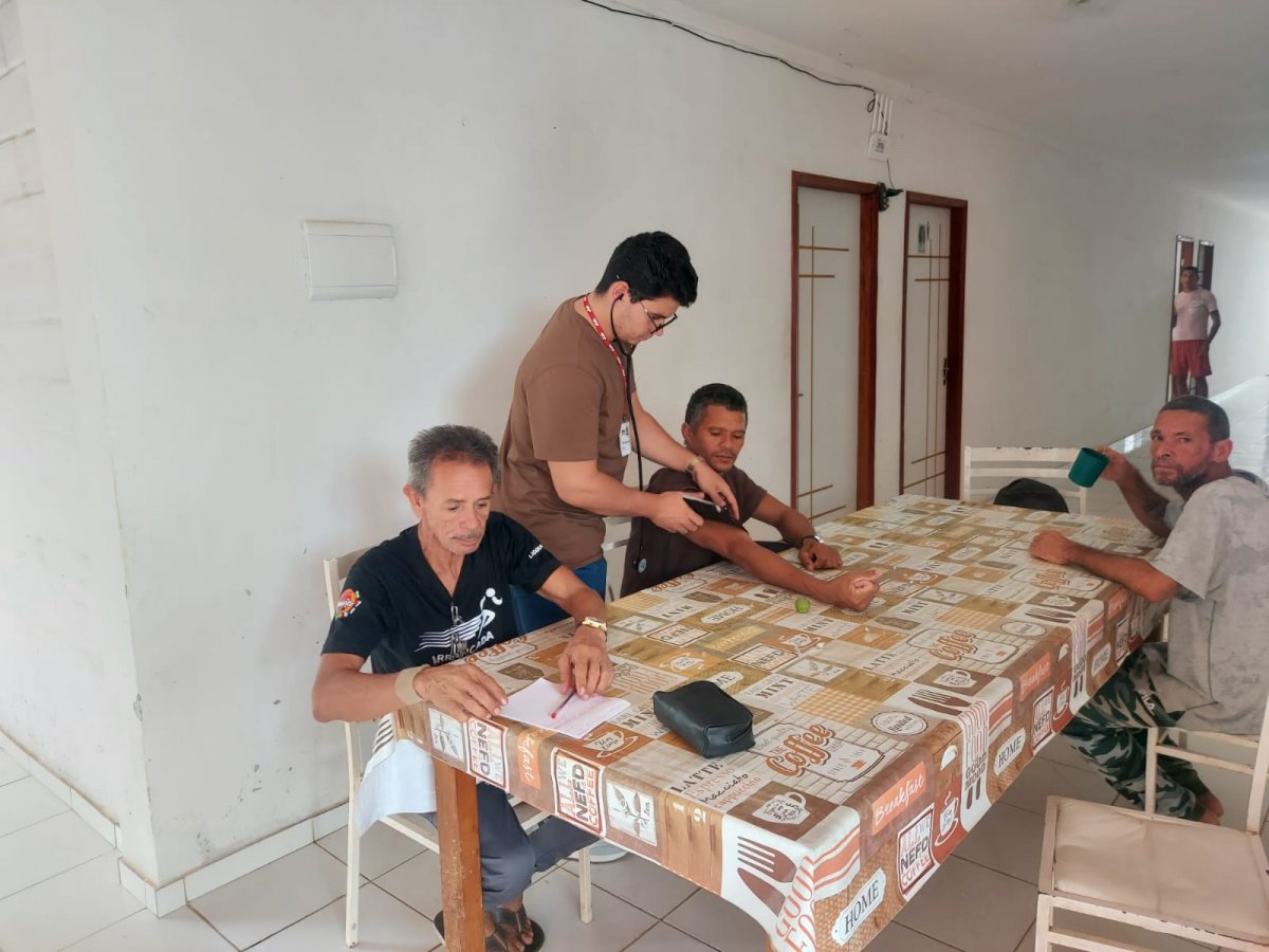 Com o objetivo de promover um espaço de escuta, troca de experiências e conscientização, a roda de conversa abordou temas fundamentais para o bem-estar dos participantes, como saúde mental, saúde física e os impactos do uso abusivo de álcool e outras drogas. A proposta foi conduzida de forma acolhedora e participativa, permitindo que os acolhidos compartilhassem vivências e dúvidas em um ambiente seguro e respeitoso. Os discentes ainda realizaram alguns atendimentos básicos como o aferimento da pressão dos acolhidos e alguns exercícios de mobilidade.