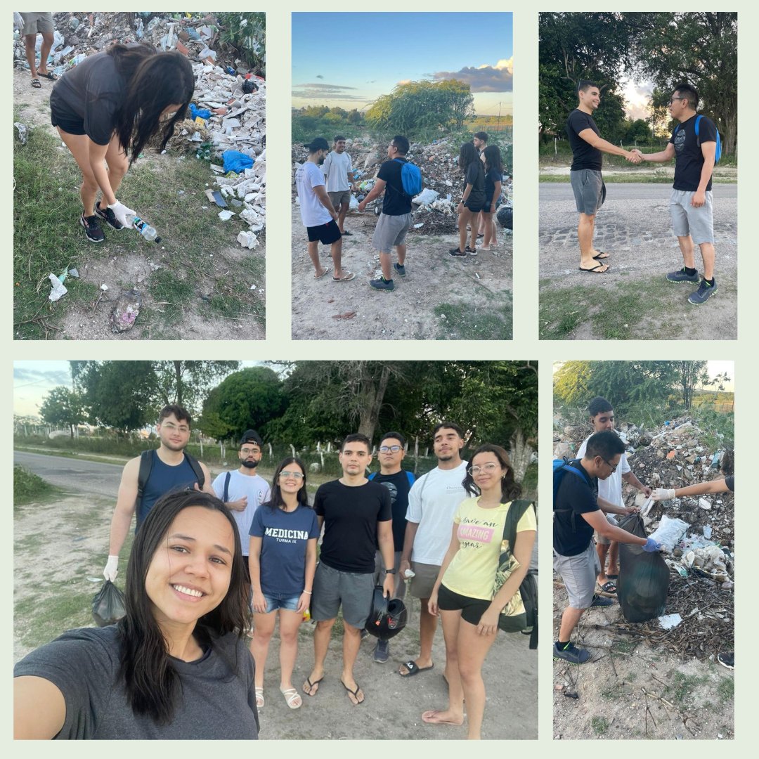Já na etapa prática, realizada em terrenos próximos à UNIVASF, o grupo dedicou cerca de cinco horas às atividades de campo. A ação teve início com conversas educativas com moradores locais, abordando temas como os riscos do descarte inadequado, os benefícios da reciclagem e a importância de manter os espaços públicos limpos. Em seguida, os participantes se empenharam na coleta dos resíduos, separando-os entre recicláveis, não recicláveis e rejeitos, assegurando o descarte adequado e o encaminhamento responsável dos materiais.