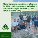 Com organização, trabalho em equipe e compromisso ambiental, os integrantes do Programa Escola Verde (PEV) colocaram em prática uma importante iniciativa de coleta seletiva e conscientização ambiental no município de Paulo Afonso (BA). A ação, realizada no dia 10 de setembro de 2025, foi resultado direto de um cuidadoso planejamento prévio, também conduzido pelos discentes em reunião on-line, que teve como foco o detalhamento de estratégias para atuação em campo.
