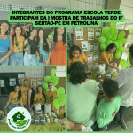 No dia 5 de setembro de 2025, integrantes do Programa Escola Verde (PEV) participaram da I Mostra de Trabalhos do IFSertão-PE – Campus Petrolina, apresentando uma exposição educativa sobre temas ligados à sustentabilidade e preservação ambiental.