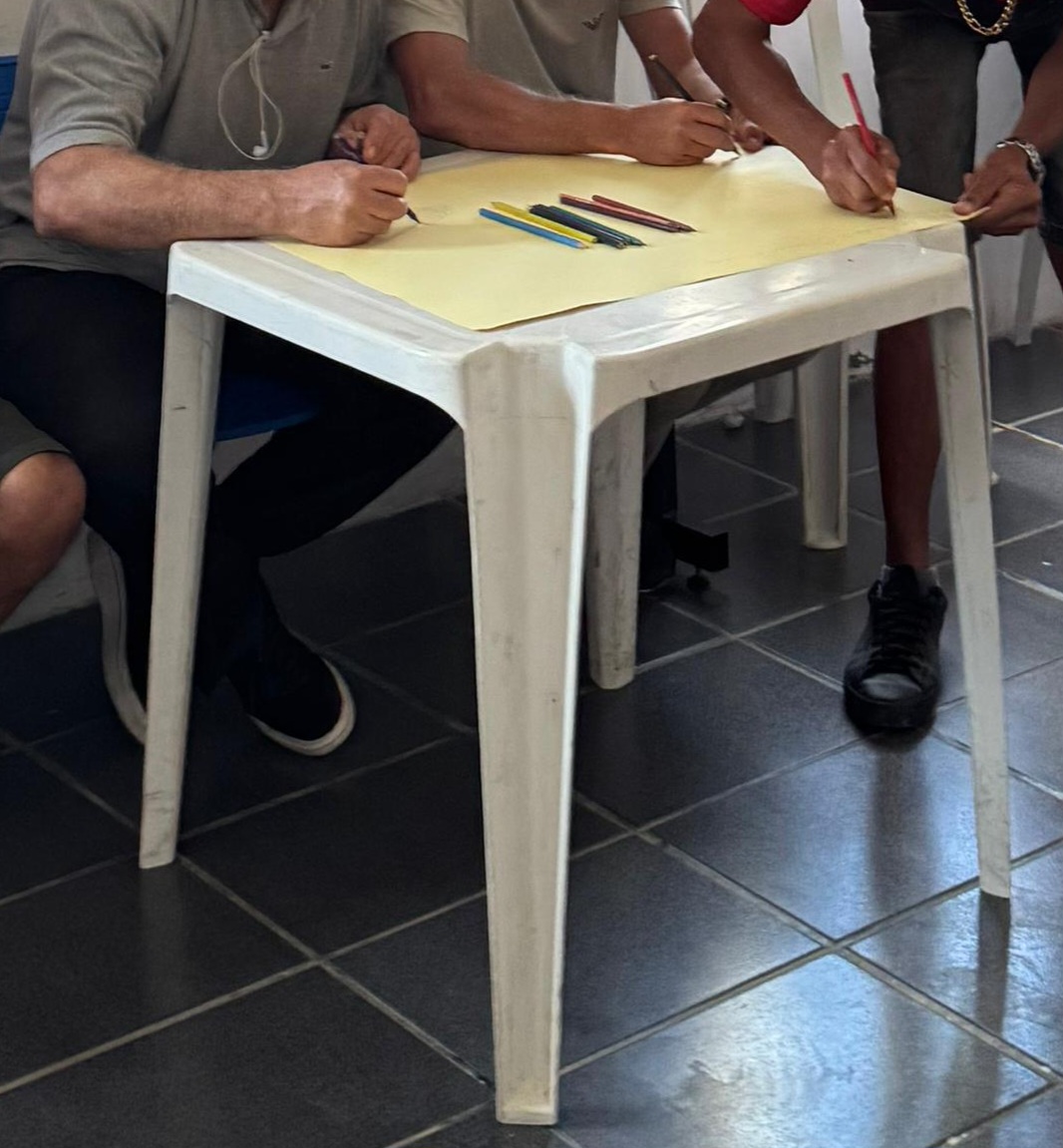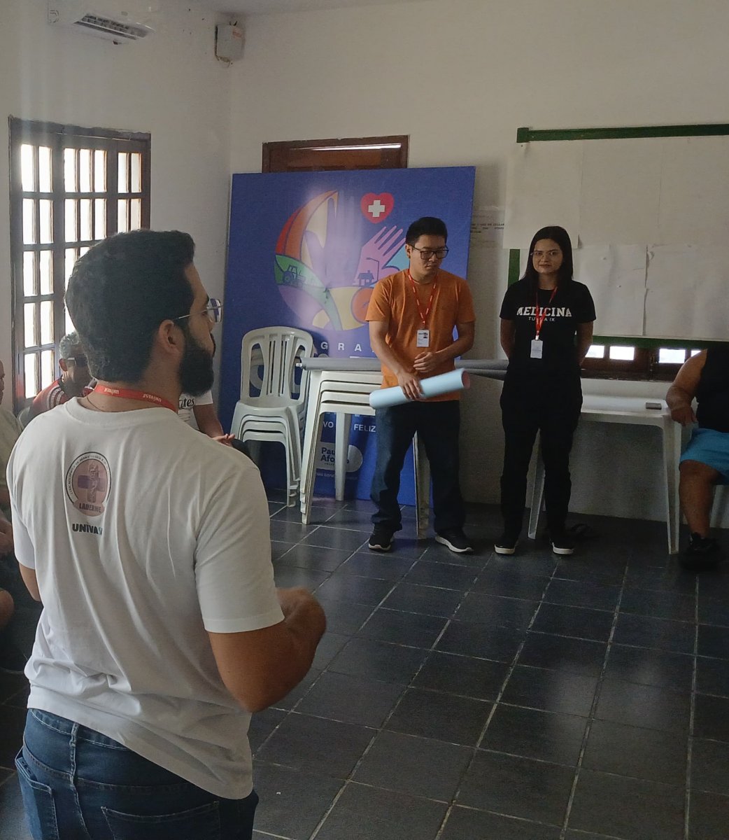 A ação foi cuidadosamente planejada pela equipe: os estudantes Amanda Lima Noronha, Juan, e Maria Eduarda Lopes de Assis Almeida ficaram responsáveis pela organização e montagem da proposta, enquanto Carlos Eduardo Oliveira Barros, Henri Jun Iti Okubo e Thalisson Gonçalves Almeida conduziram a conversa no dia do encontro. O momento foi acolhedor e participativo, contando com cerca de 15 a 20 pessoas, entre alunos e pacientes.