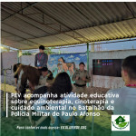O Programa Escola Verde (PEV) participou, no dia 31 de outubro de 2025, de uma atividade educativa realizada no Batalhão da Polícia Militar de Paulo Afonso – BA, onde são desenvolvidas práticas de equinoterapia e cinoterapia. A ação teve como objetivo ampliar a criticidade dos participantes sobre a relação entre cuidado, meio ambiente e interação com os animais, destacando como essas terapias contribuem para o bem-estar humano e para a valorização da natureza.