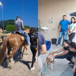 Após o diálogo em grupos, o debate geral foi conduzido pelas estudantes Amanda e Radmila, destacando o papel dos animais na promoção da saúde emocional, a importância do cuidado ambiental e outras práticas que podem colaborar com terapias integrativas. A atividade foi finalizada com um momento de vivência prática, no qual os participantes puderam observar e experimentar como ocorre a condução terapêutica com os animais.