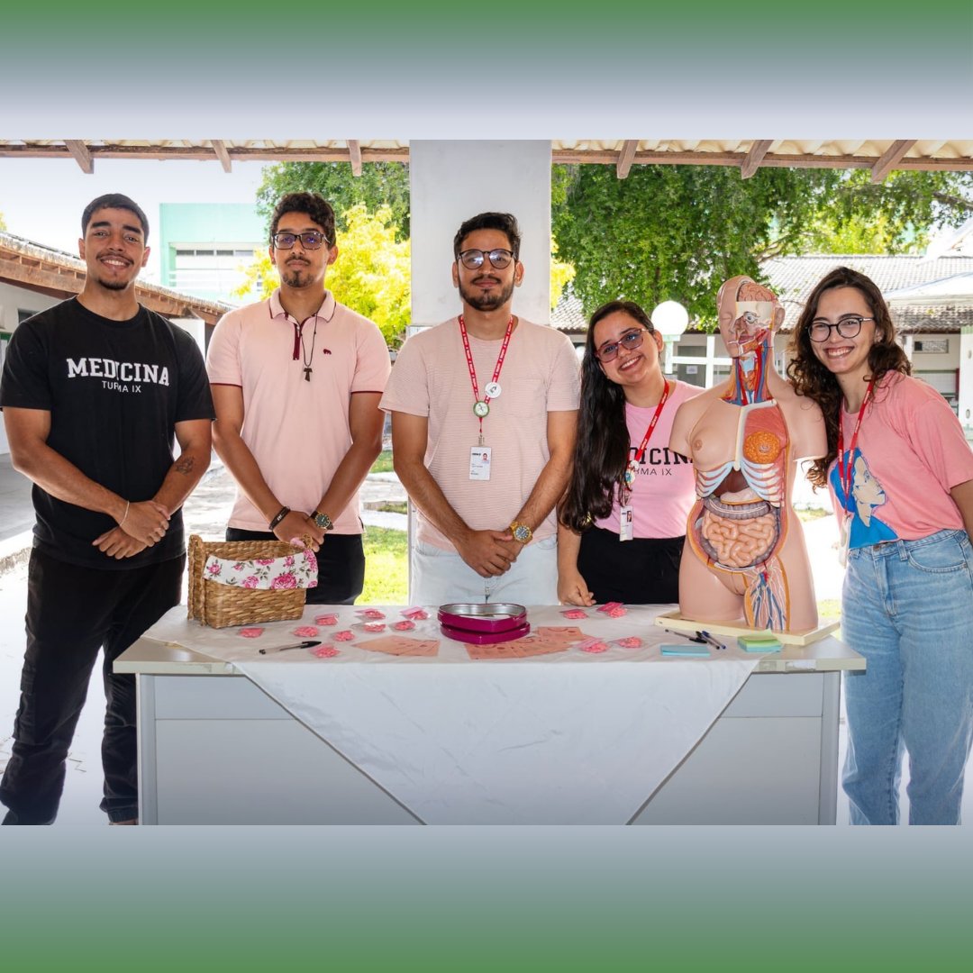 No eixo sobre câncer de mama, Beatriz Vitória Carvalho Lordêlo, Elvis Emanoel Lino Neco e Gustavo Henrique Santos Bomfim conduziram diálogos sobre como poluentes, pesticidas e hábitos cotidianos podem influenciar na saúde feminina, relacionando prevenção, bem-estar e qualidade ambiental.