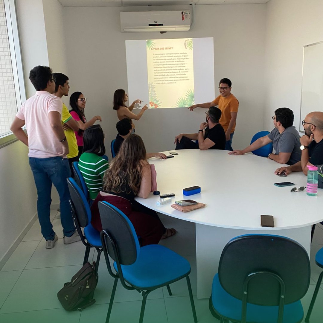 Dando continuidade às ações, no dia 19 de novembro de 2025, ocorreu uma palestra presencial sobre compostagem ministrada por uma professora convidada. A atividade teve reuniu oito estudantes: