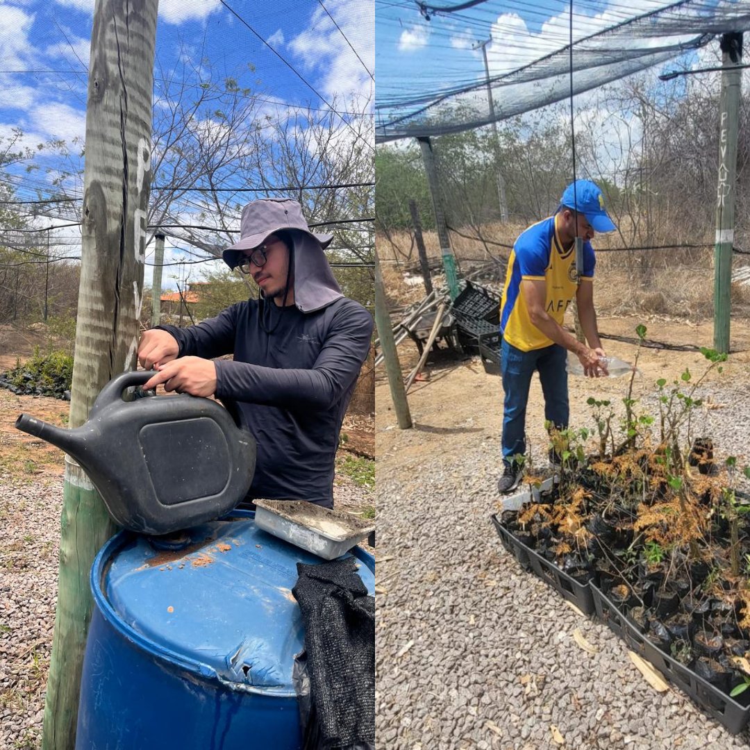 As atividades envolveram estudantes como João Higino Ferreira de Souza, Caroline Gomes Ferreira, Alan Francisco de Souza e Ezequiel Alves da Silva Oliveira, que se revezaram em diferentes etapas de cuidado e construção, reforçando o compromisso coletivo com a preservação ambiental e com a infraestrutura do viveiro.