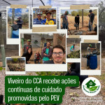 Além da construção, os integrantes também realizaram ações de manutenção das plantas do viveiro, incluindo: irrigação manual das mudas, retirada de ervas daninhas e plantas invasoras, verificação do estado das espécies cultivadas, desbaste e manejo para garantir o bom desenvolvimento das plantas.