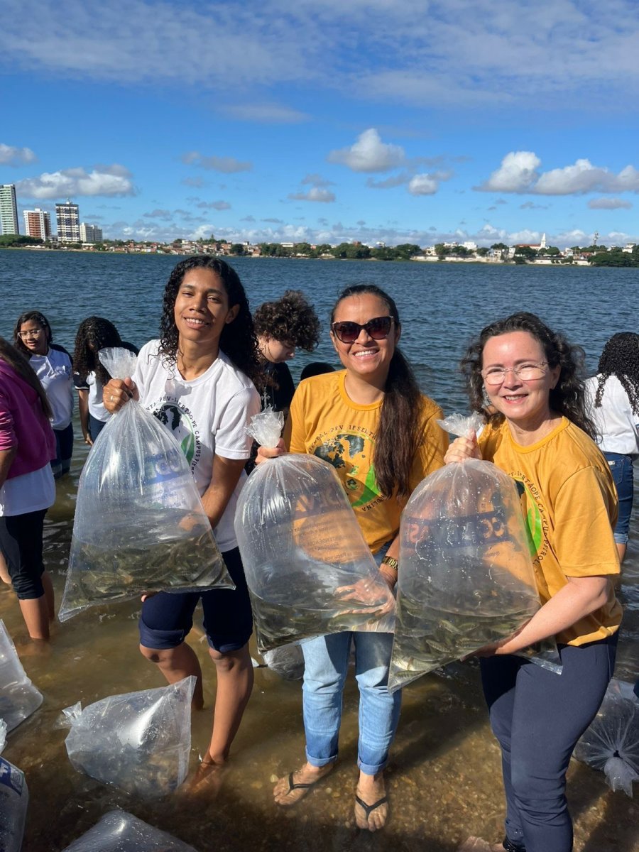 Em celebração ao Dia Mundial do Meio Ambiente, no dia 05/06/2025, a bolsista Kelly e a voluntária Luciana, integrantes do Programa Escola Verde (PEV), participaram de uma ação de peixamento promovida pela Codevasf no Rio São Francisco, em Petrolina (PE).