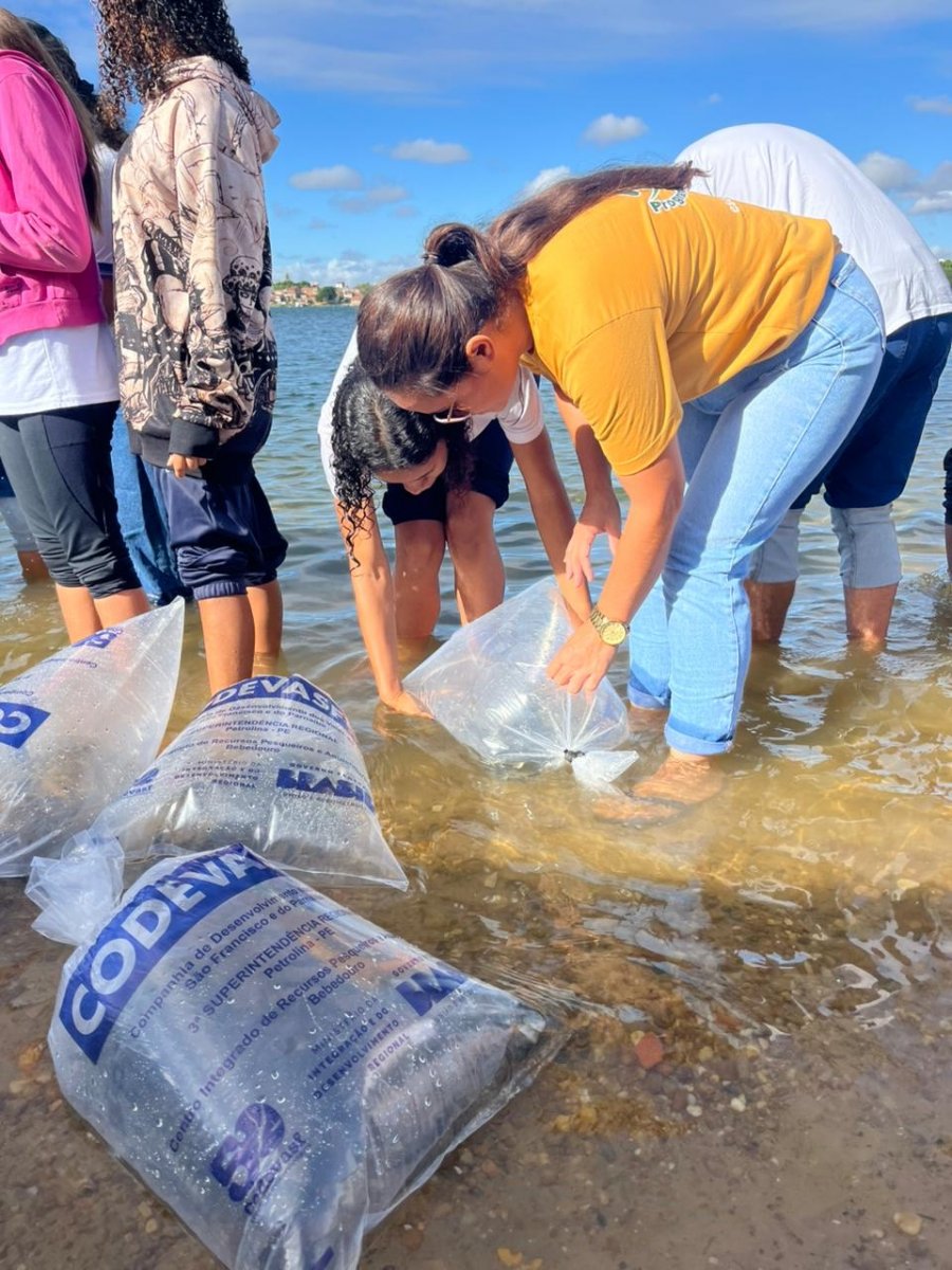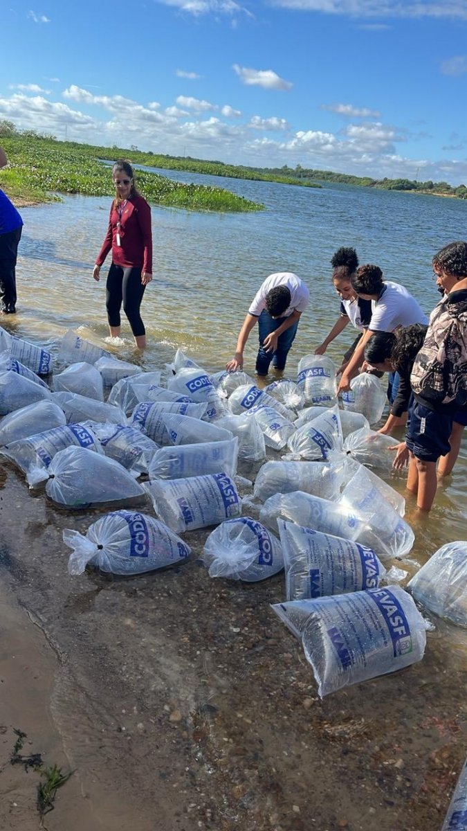 Além da soltura dos peixes, foram realizadas conversas sobre manejo sustentável dos recursos hídricos, impactos da poluição e formas de preservação das espécies nativas, estimulando a conscientização coletiva sobre a necessidade de cuidar das águas do Velho Chico.