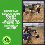 No domingo, 24 de agosto de 2025, o Programa Escola Verde realizou uma atividade de coleta seletiva no 20º Batalhão da Polícia Militar, com o objetivo de promover a organização do espaço, reduzir impactos ambientais e incentivar o descarte correto dos resíduos sólidos.